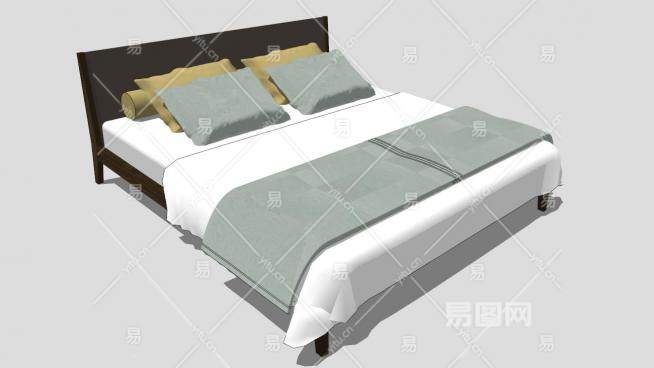 白色北欧风情床SU模型下载_sketchup草图大师SKP模型