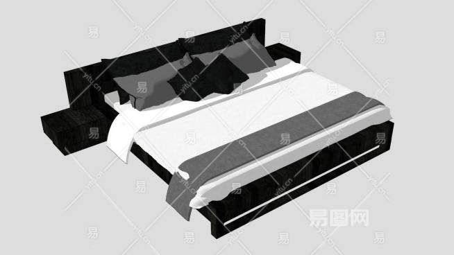 布艺白色北欧风格精品双人床SU模型下载_sketchup草图大师SKP模型