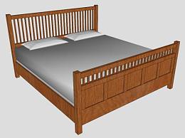 美式现代实木床SU模型下载_sketchup草图大师SKP模型