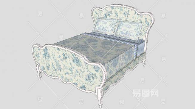 欧式印花室内床SU模型下载_sketchup草图大师SKP模型