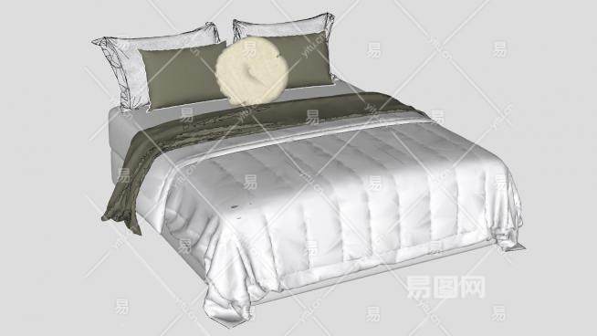 简欧双人床SU模型下载_sketchup草图大师SKP模型