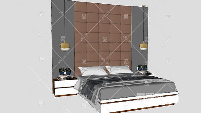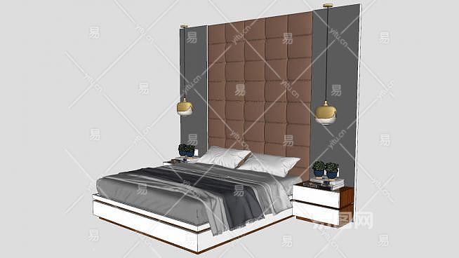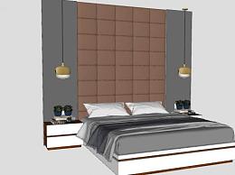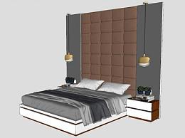 双人床背景墙设计SU模型下载_sketchup草图大师SKP模型