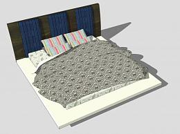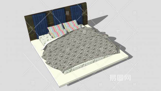 北欧风格花纹布艺双人床SU模型下载_sketchup草图大师SKP模型