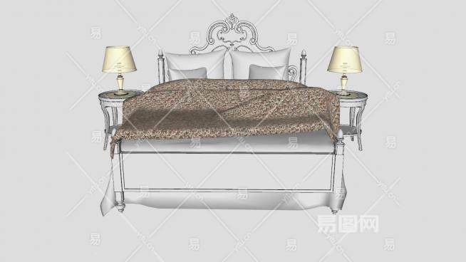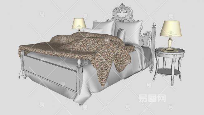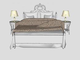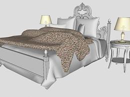 欧式床铺双人床和床头柜SU模型下载_sketchup草图大师SKP模型