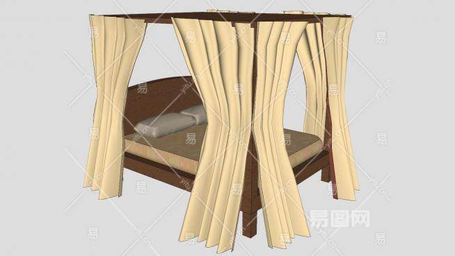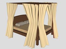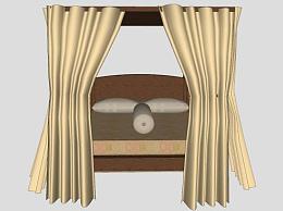 带蚊帐的木质床铺SU模型下载_sketchup草图大师SKP模型