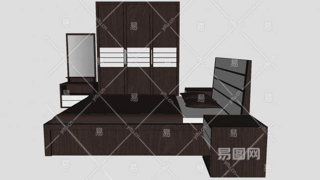 房间卧室家具整套SU模型下载_sketchup草图大师SKP模型