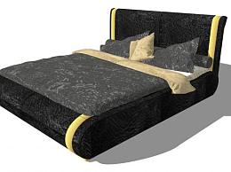 现代黑色双人床床铺SU模型下载_sketchup草图大师SKP模型