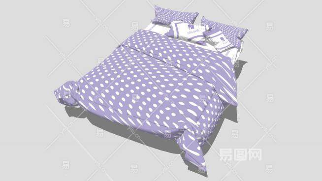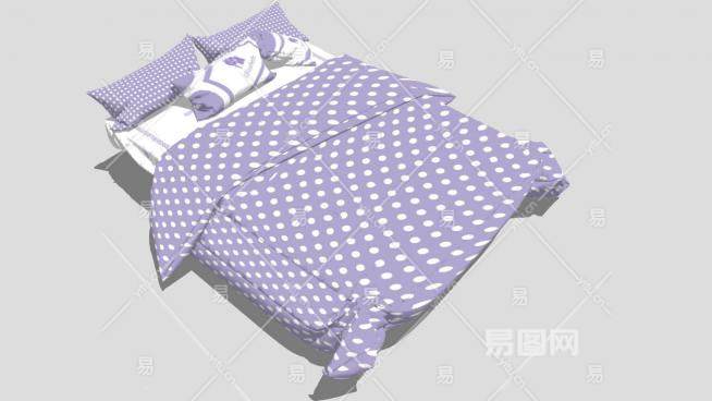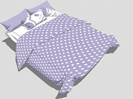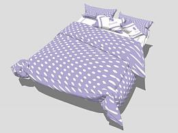 现代北欧风浅紫色双人床SU模型下载_sketchup草图大师SKP模型