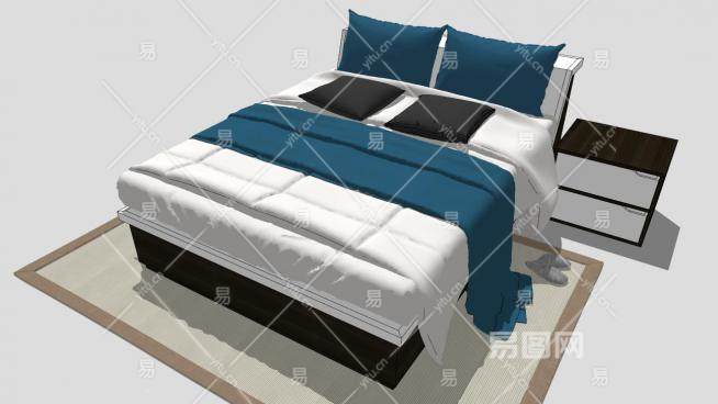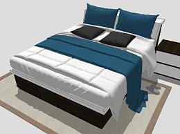 简约北欧双人床和床头柜SU模型下载_sketchup草图大师SKP模型