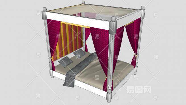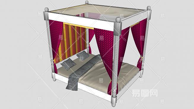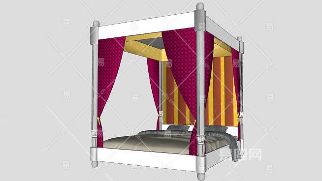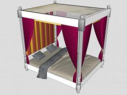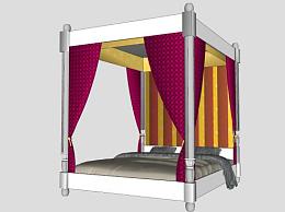 带蚊帐的双人床床铺SU模型下载_sketchup草图大师SKP模型