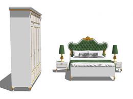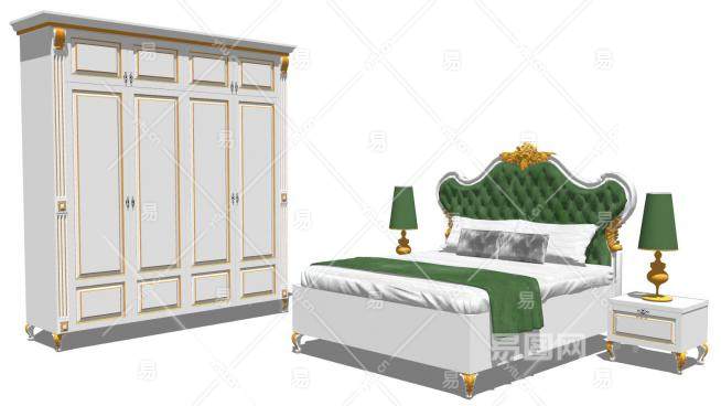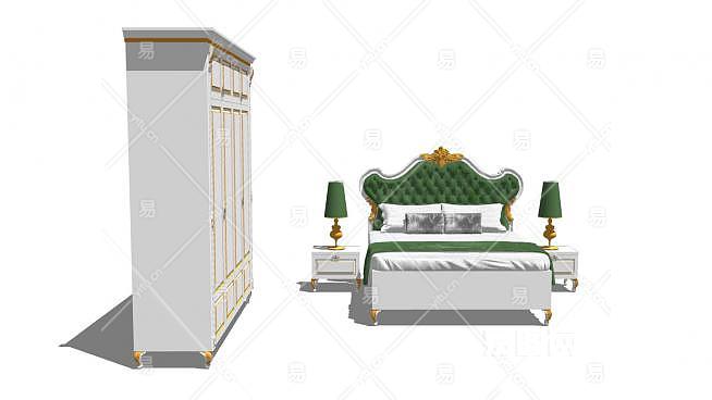 欧式白色卧室家具SU模型下载_sketchup草图大师SKP模型