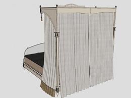 欧式古典床双人床SU模型下载_sketchup草图大师SKP模型