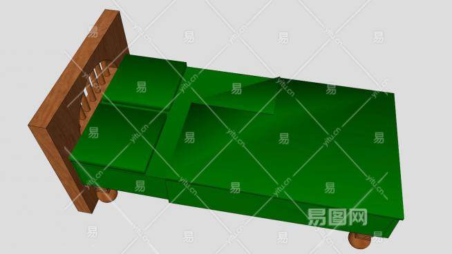 实木床板式床SU模型下载_sketchup草图大师SKP模型