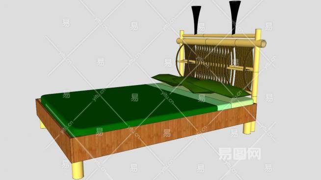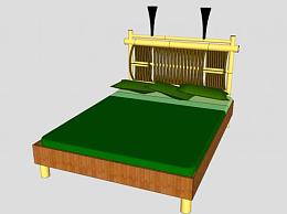 竹床双人床SU模型下载_sketchup草图大师SKP模型