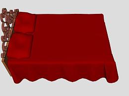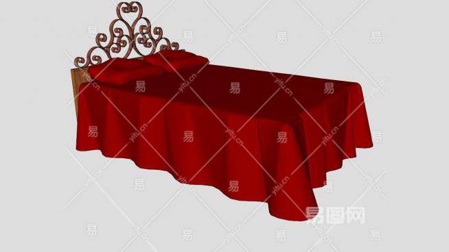红色铁艺双人床SU模型下载_sketchup草图大师SKP模型