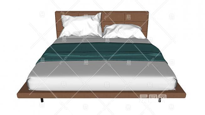 平台床板式双人床SU模型下载_sketchup草图大师SKP模型