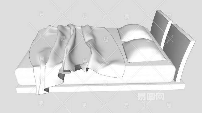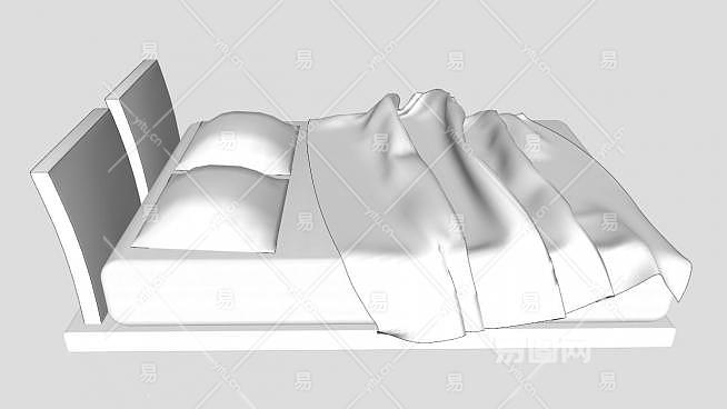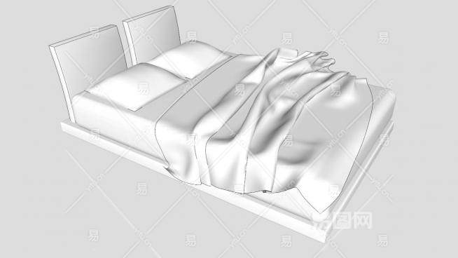 白色弹簧双人床SU模型下载_sketchup草图大师SKP模型