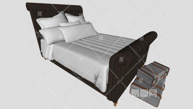 美式风格雪橇床SU模型下载_sketchup草图大师SKP模型