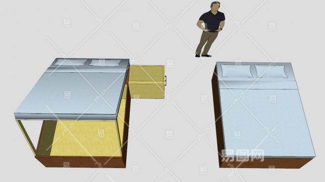 储物双人床SU模型下载_sketchup草图大师SKP模型