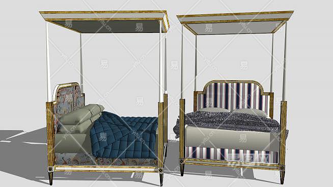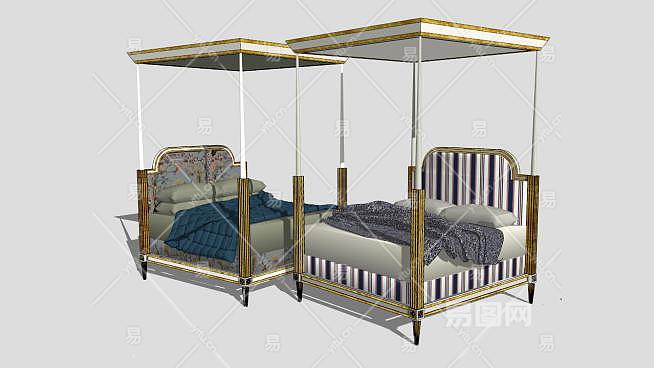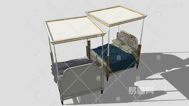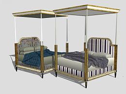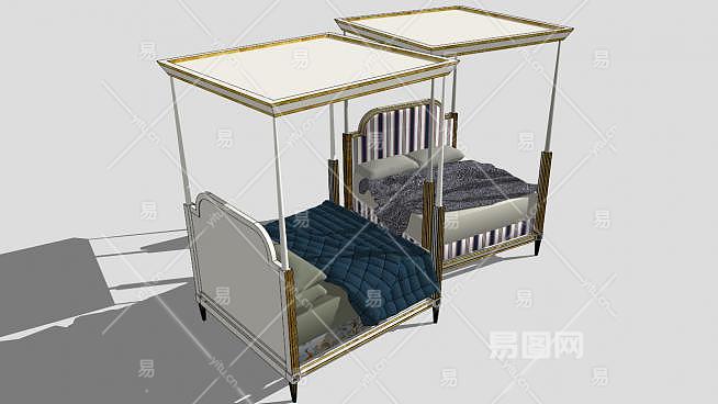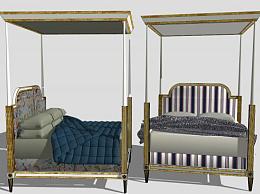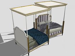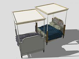架子床国王床SU模型下载_sketchup草图大师SKP模型