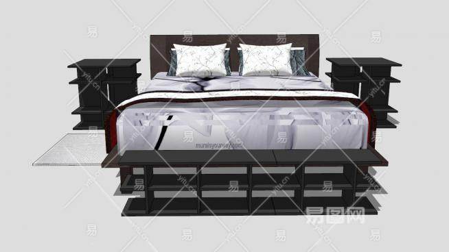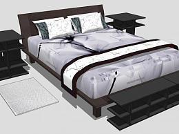 现代床铺床头柜SU模型下载_sketchup草图大师SKP模型