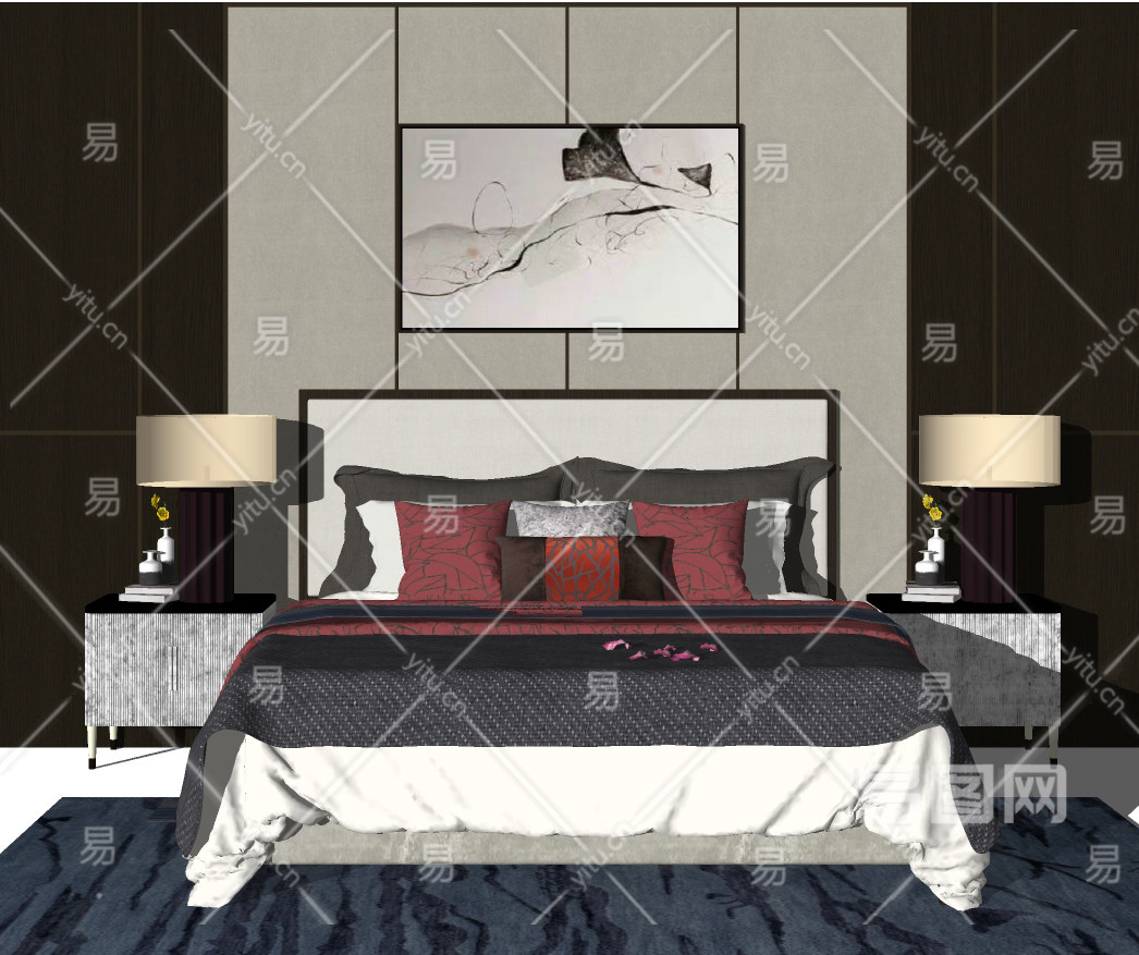 当前的位置:首页 > sketchup > sketchup模型 > 床具 > 双人床 > 新中式双人床,床品,床头柜,台灯,花瓶摆件,床头装饰挂画su草图模型下载