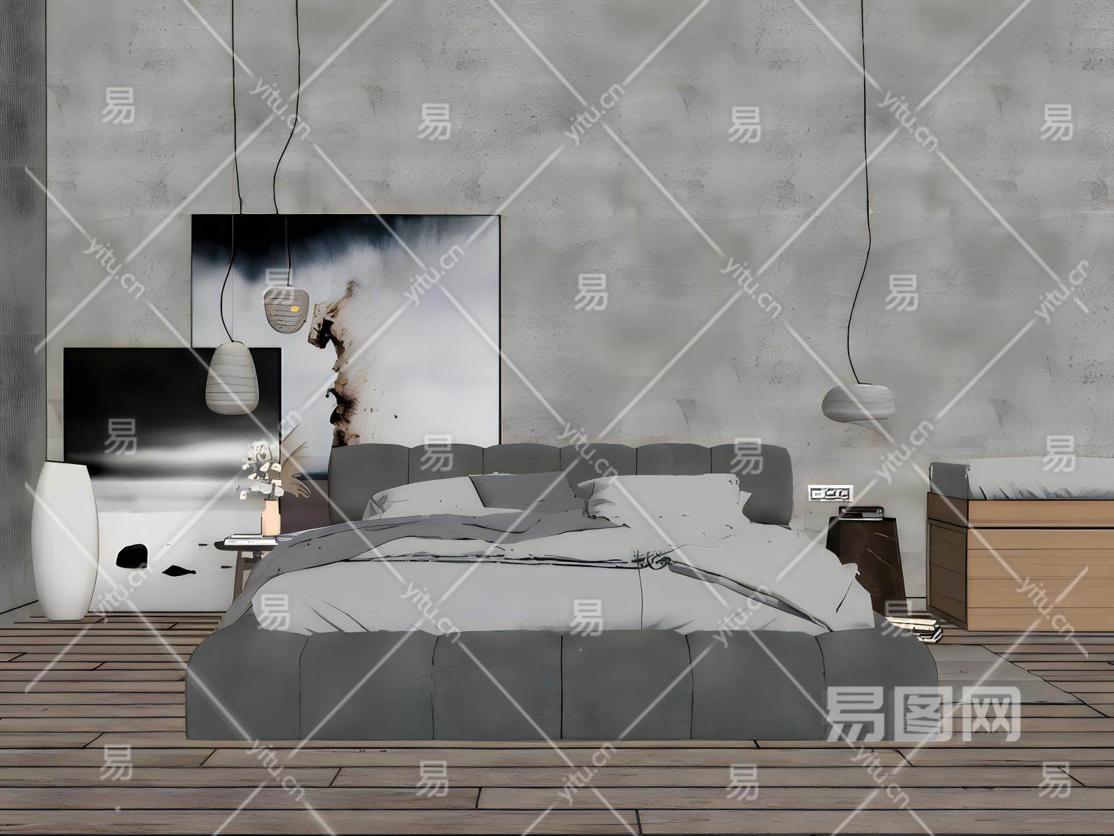 当前的位置:首页 > sketchup > sketchup模型 > 床具 > 双人床 > 侘寂风家居卧室