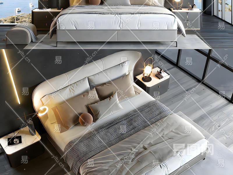 简欧皮革双人床