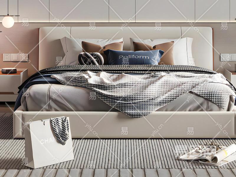 现代布艺双人床