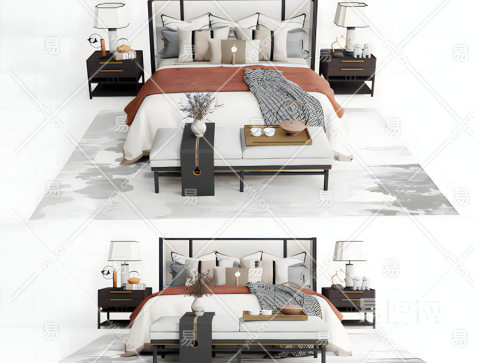 当前的位置:首页 > sketchup > sketchup模型 > 床具 > 双人床 > 新中式双人床床具床头柜组合
