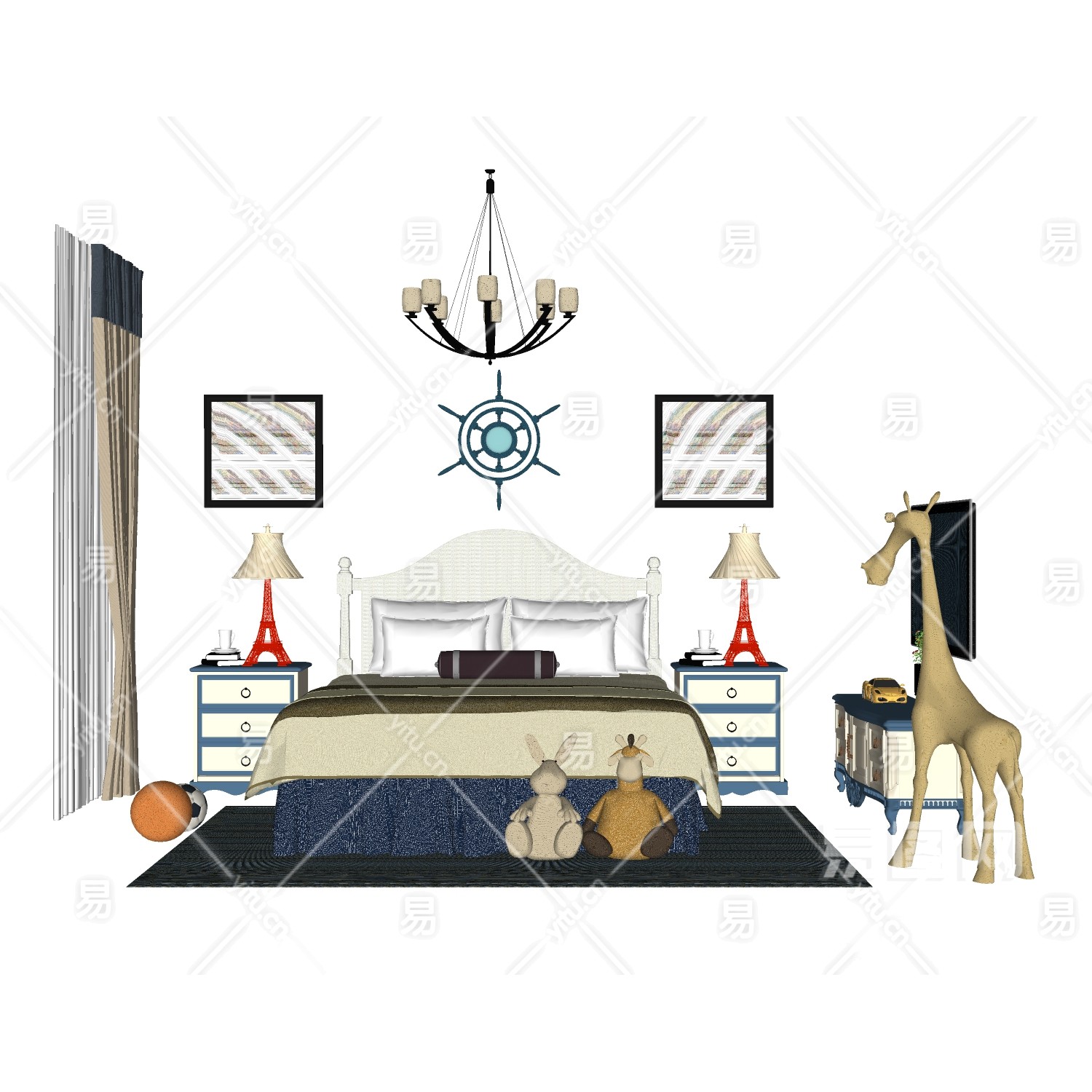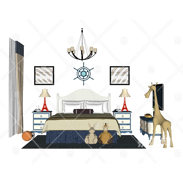 当前的位置:首页 > sketchup > sketchup模型 > 床具 > 双人床 > 简欧卧室双人床组合