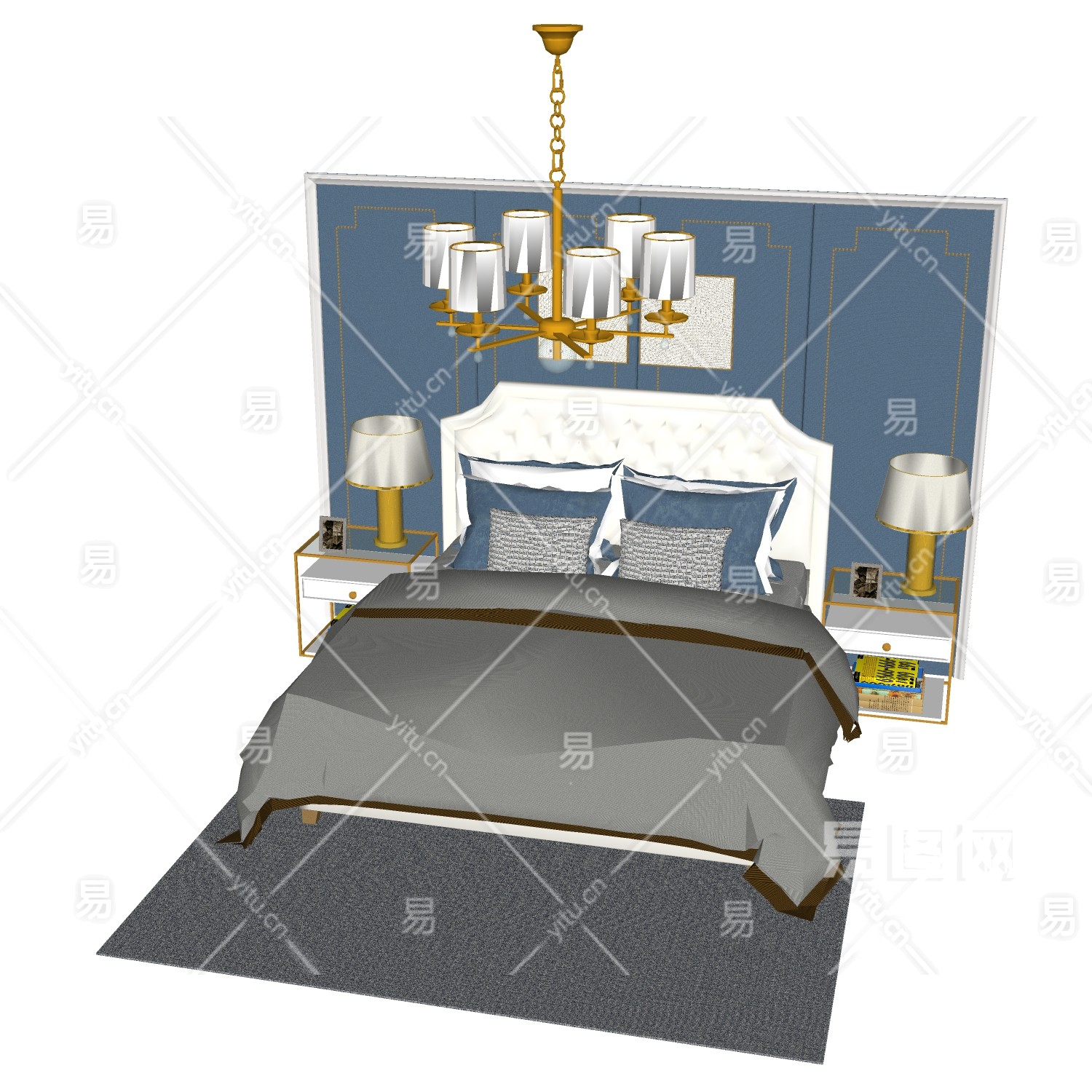 当前的位置:首页 > sketchup > sketchup模型 > 床具 > 双人床 > 简欧卧室双人床组合