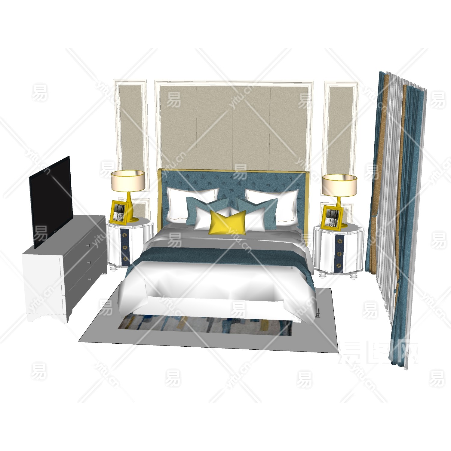 当前的位置:首页 > sketchup > sketchup模型 > 床具 > 双人床 > 简欧卧室双人床组合