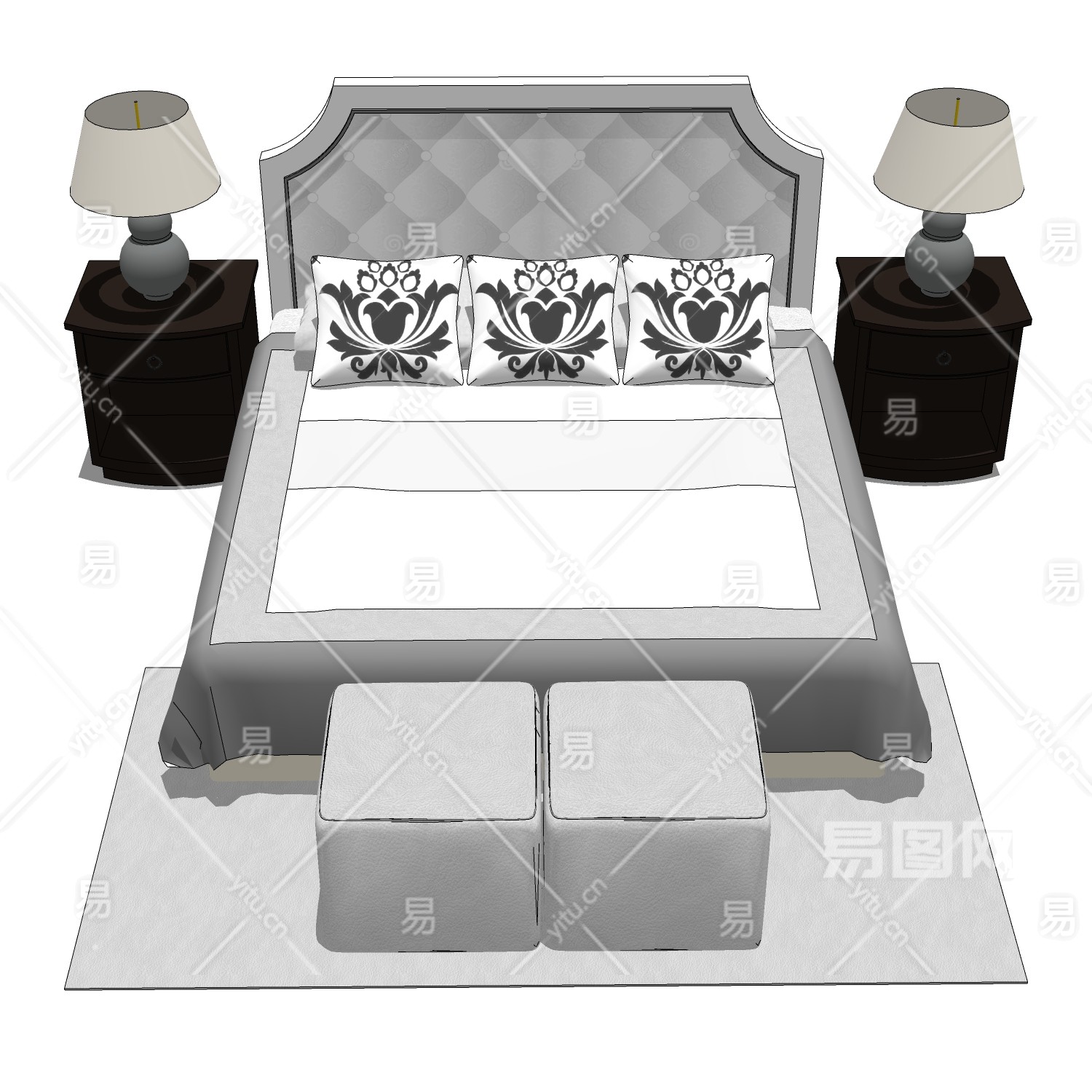 当前的位置:首页 > sketchup > sketchup模型 > 床具 > 双人床 > 简欧卧室双人床组合
