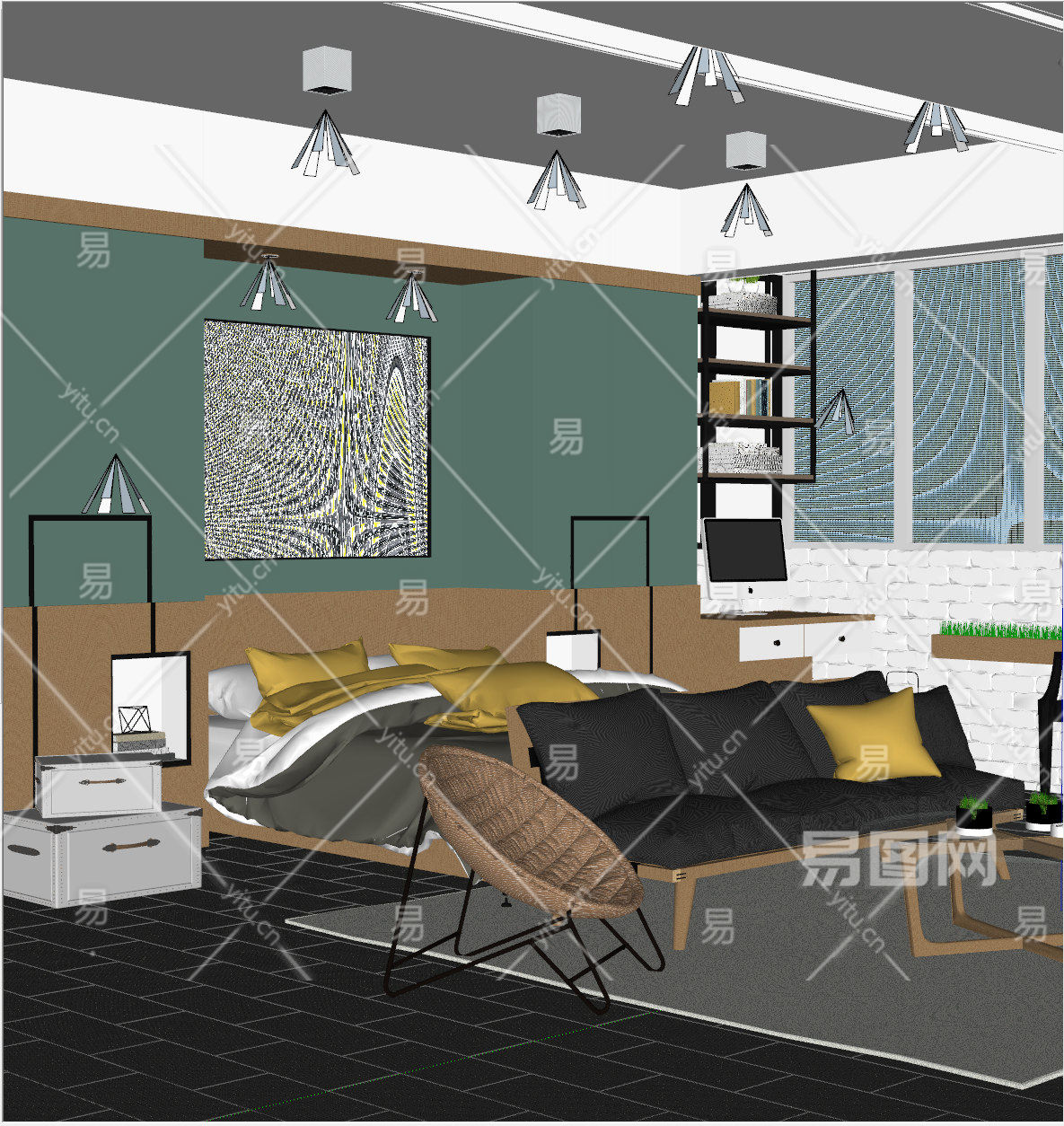 当前的位置:首页 > sketchup > sketchup模型 > 床具 > 双人床 > 简欧卧室双人床组合