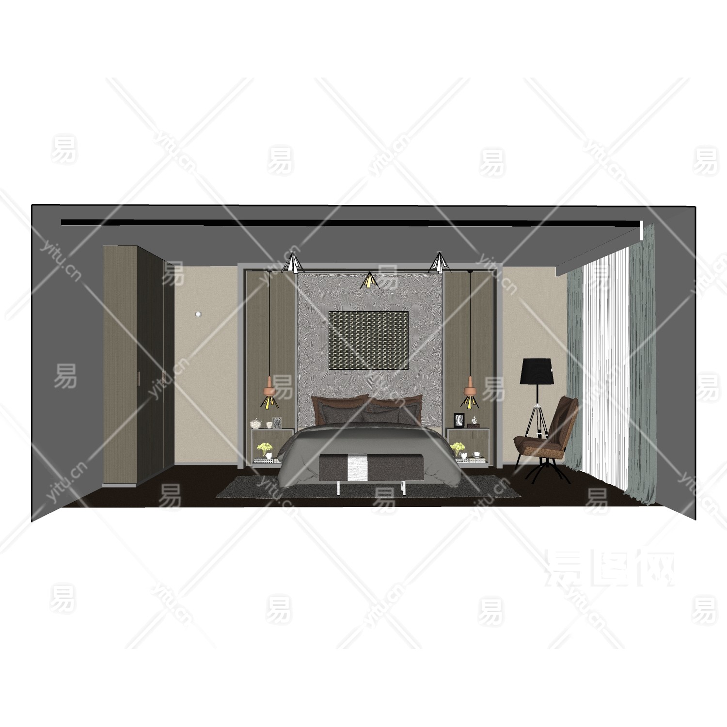当前的位置:首页 > sketchup > sketchup模型 > 床具 > 双人床 > 简欧卧室双人床组合