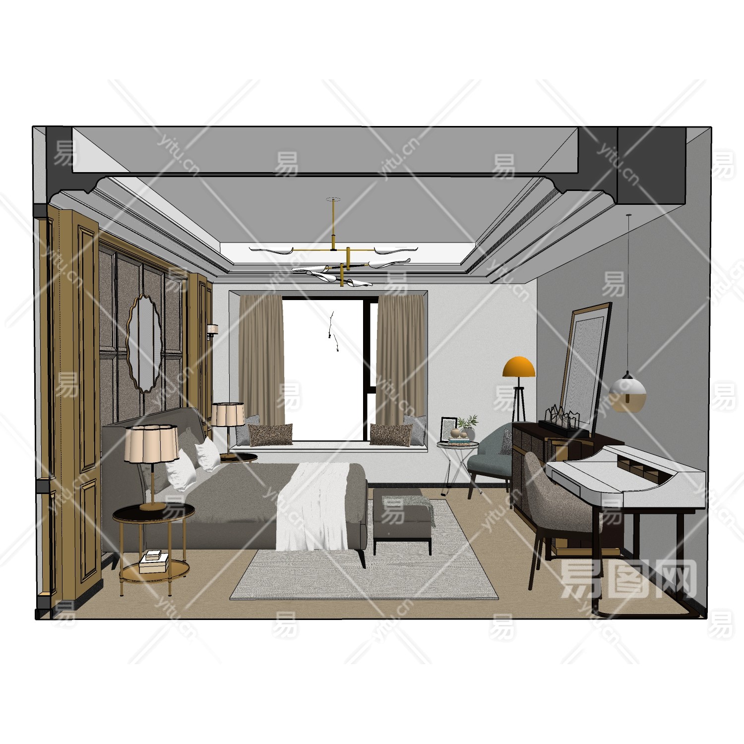 当前的位置:首页 > sketchup > sketchup模型 > 床具 > 双人床 > 简欧卧室双人床组合
