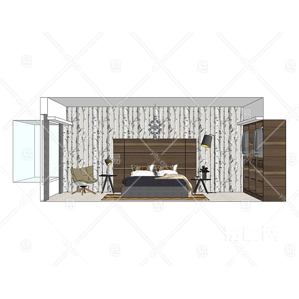 当前的位置:首页 > sketchup > sketchup模型 > 床具 > 双人床 > 简欧卧室双人床组合