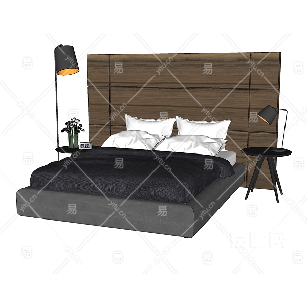 当前的位置:首页 > sketchup > sketchup模型 > 床具 > 双人床 > 简欧卧室双人床组合