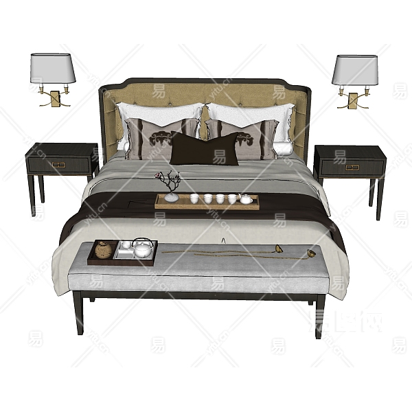当前的位置:首页 > sketchup > sketchup模型 > 床具 > 双人床 > 简欧卧室双人床组合