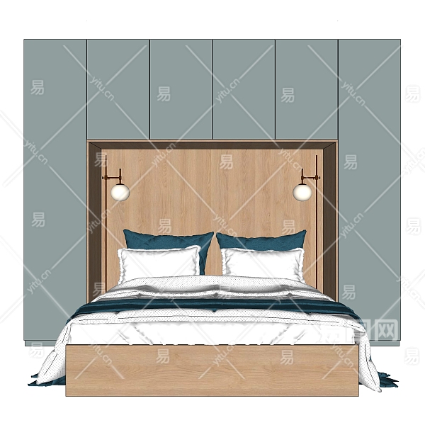当前的位置:首页 > sketchup > sketchup模型 > 床具 > 双人床 > 简欧卧室双人床组合