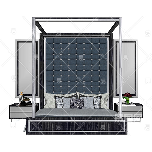 当前的位置:首页 > sketchup > sketchup模型 > 床具 > 双人床 > 简欧卧室双人床组合
