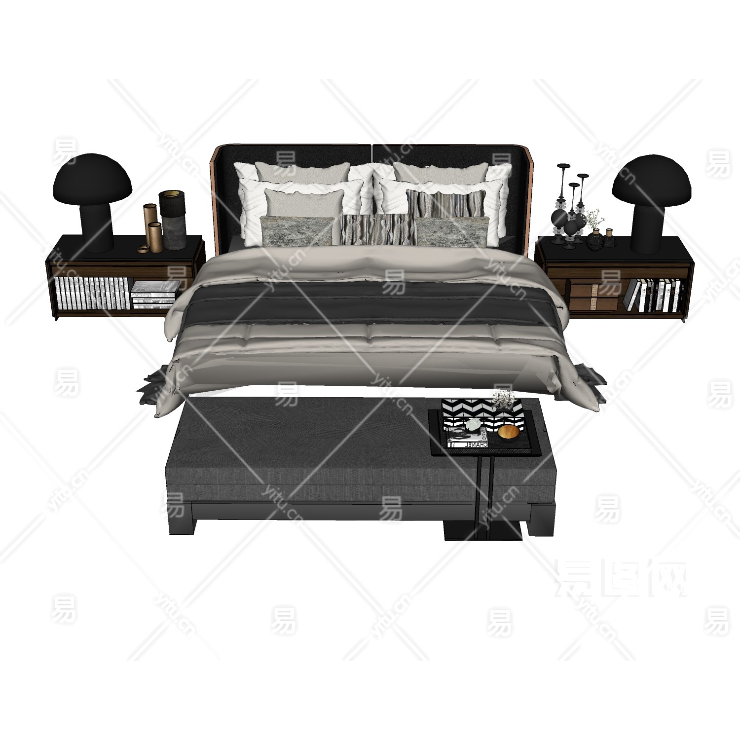 当前的位置:首页 > sketchup > sketchup模型 > 床具 > 双人床 > 简欧卧室双人床组合