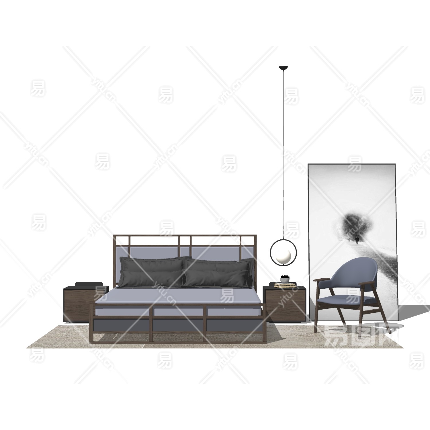当前的位置:首页 > sketchup > sketchup模型 > 床具 > 双人床 > 简欧卧室双人床组合