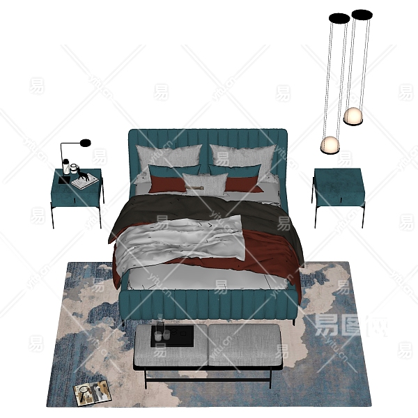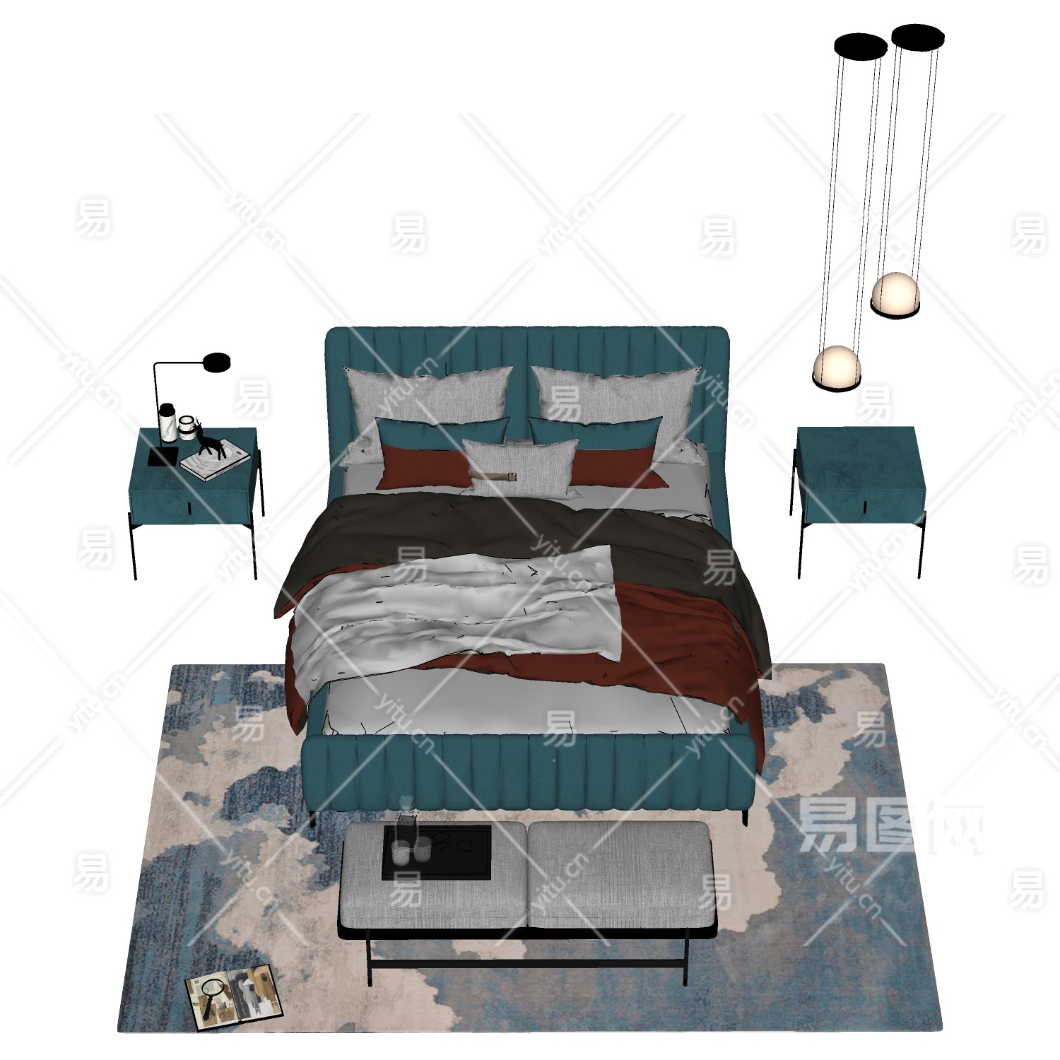 当前的位置:首页 > sketchup > sketchup模型 > 床具 > 双人床 > 简欧卧室双人床组合