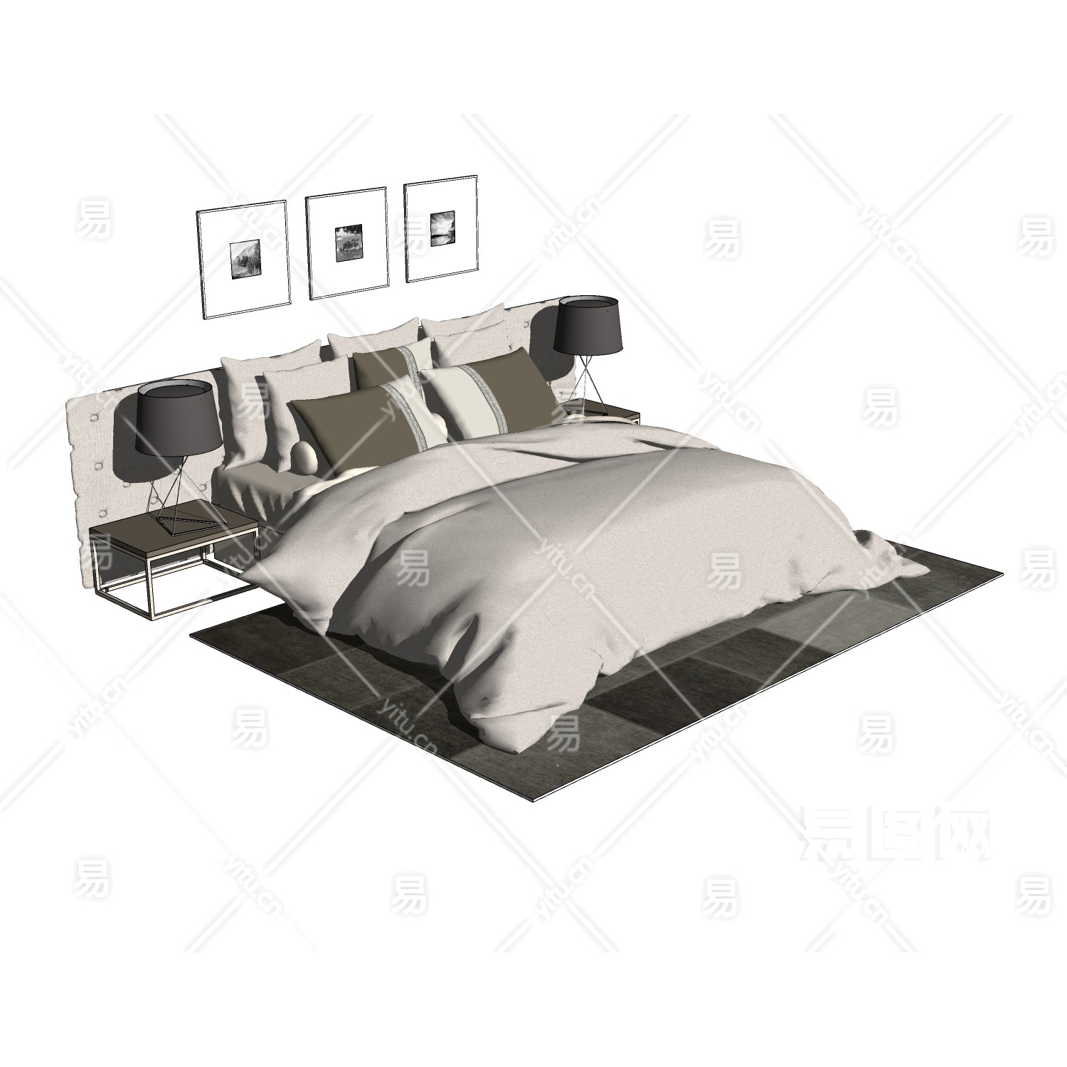 当前的位置:首页 > sketchup > sketchup模型 > 床具 > 双人床 > 简欧卧室双人床组合