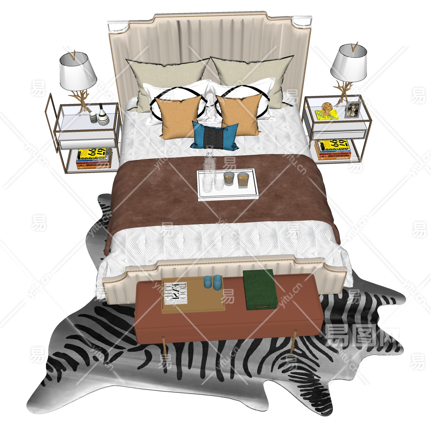 当前的位置:首页 > sketchup > sketchup模型 > 床具 > 双人床 > 简欧卧室双人床组合