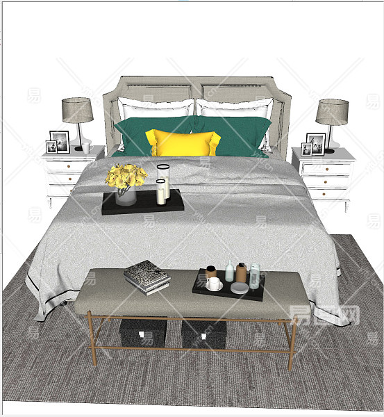 当前的位置:首页 > sketchup > sketchup模型 > 床具 > 双人床 > 简欧卧室双人床组合