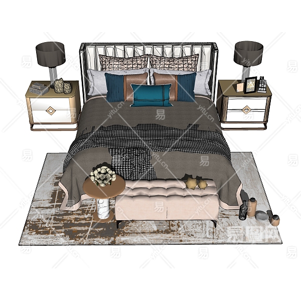 当前的位置:首页 > sketchup > sketchup模型 > 床具 > 双人床 > 简欧卧室双人床组合