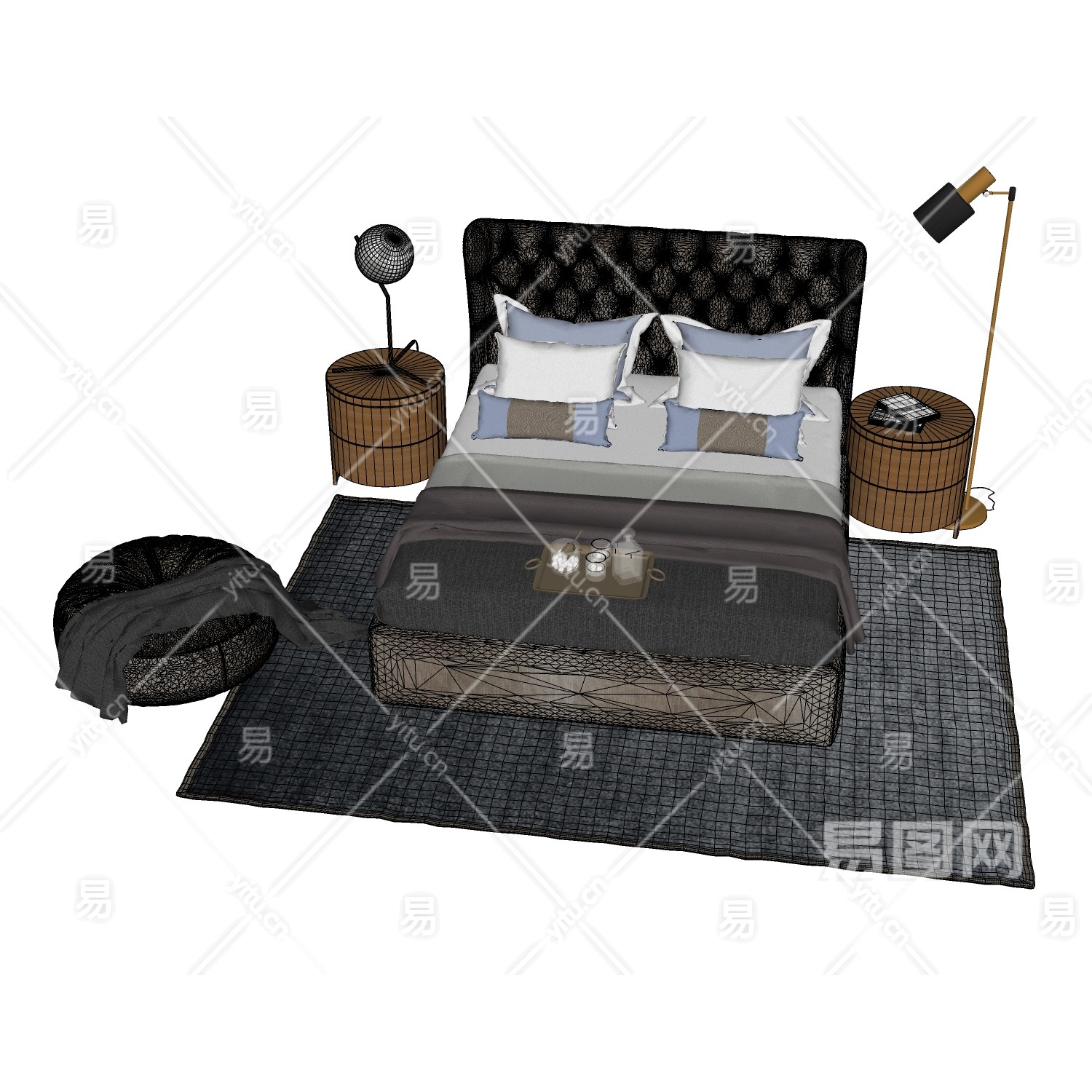 当前的位置:首页 > sketchup > sketchup模型 > 床具 > 双人床 > 简欧卧室双人床组合
